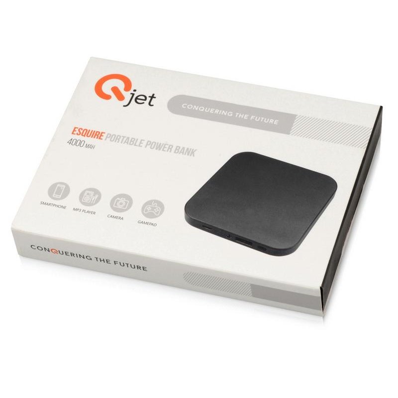 Внешний аккумулятор Esquire (4000 mAh) от бренда Qjet - идеальный подарок для сотрудников и партнеров. Корпус зарядного устройства изготовлен из алюминия. На него можно нанести гравировку. Большая площадь поверхности аккумулятора представляет широкие возможности для персонализации. На нее можно нанести логотип компании, любимую цитату или оригинальный рисунок. В Esquire встроен яркий светодиодный фонарик, который всегда поможет сориентироваться в темноте.