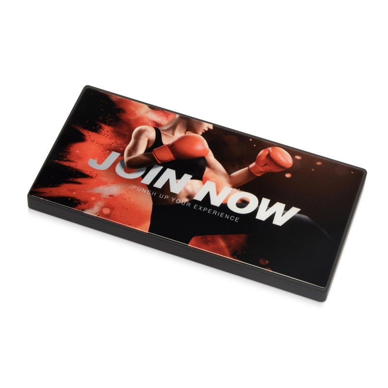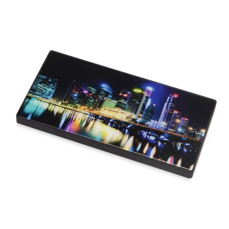 Повербанк емкостью 5000 mAh в строгом геометричном дизайне. Корпус сделан из качественного АБС-пластика с покрытием soft-touch. Ключевая деталь дизайна портативного аккумулятора — прочное закаленное стекло, которое можно декорировать. Оно обладает большим рекламным потенциалом: подходит для печати полноцветного контрастного изображения логотипа или других рекламных материалов. Закаленное стекло поставляется вместе с повербанком и легко крепится на корпус после запечатки.