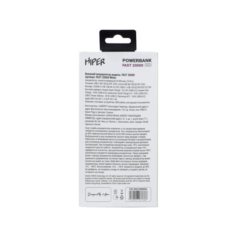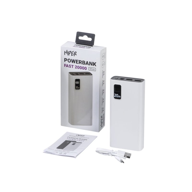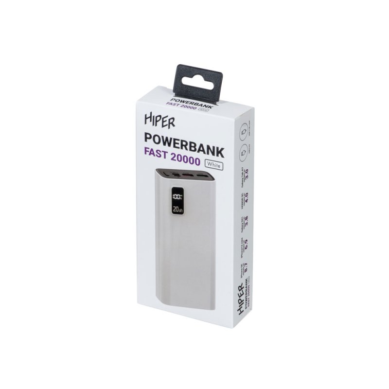 Портативный внешний аккумулятор HIPER FAST 20000 емкостью 20000 мАч (74Втч) оснащён двунаправленным портом USB-C, Micro-USB входом для зарядки,с поддержкой быстрой зарядки аккумулятора QC и PD, 2xUSB-A выходами, максимальный выходной ток 5А, максимальная мощность 22,5 Вт, поддержка быстрой зарядки стандарта QC 18 Вт, поддержка быстрой зарядки стандарта PD 18 Вт, стильный дизайн.