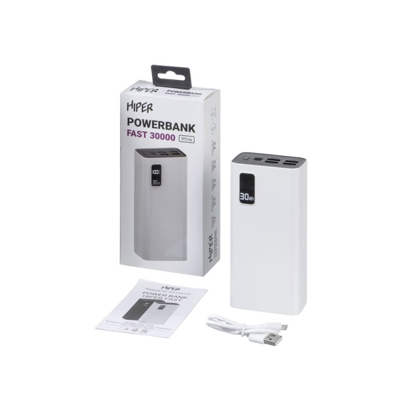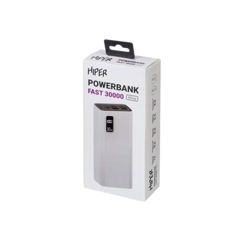 Портативный внешний аккумулятор HIPER FAST 30000 емкостью 30000 мАч (111Втч) оснащён двунаправленным портом USB-C, Micro-USB входом для зарядки,с поддержкой быстрой зарядки аккумулятора QC и PD, 4xUSB-A выходами, максимальный выходной ток 5А, максимальная мощность 22,5 Вт, поддержка быстрой зарядки стандарта QC 18 Вт, поддержка быстрой зарядки стандарта PD 18 Вт, стильный дизайн.