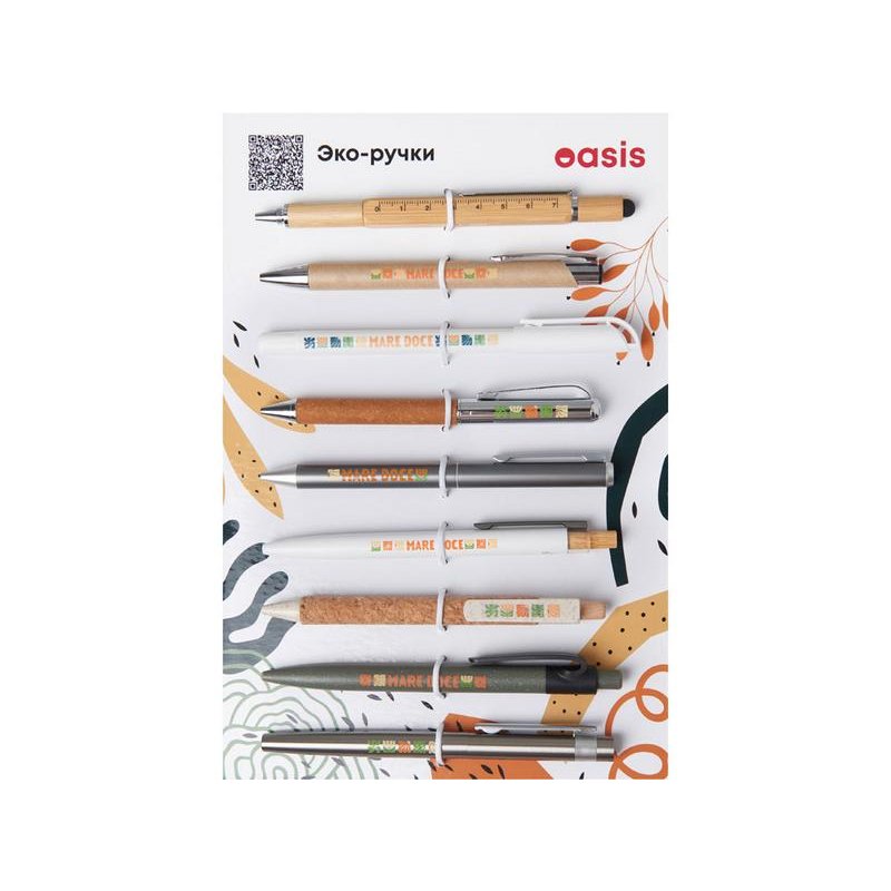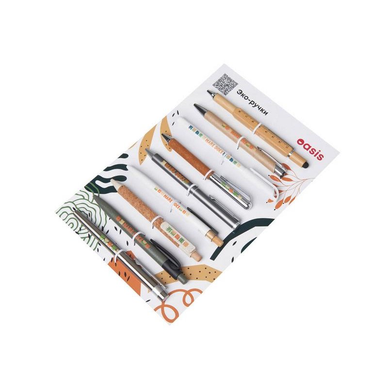 Промо-сет ЭКО ручек — это презентационный комплект, включающий 9 уникальных моделей с несколькими вариантами нанесения: УФ-печать, тампопечать.