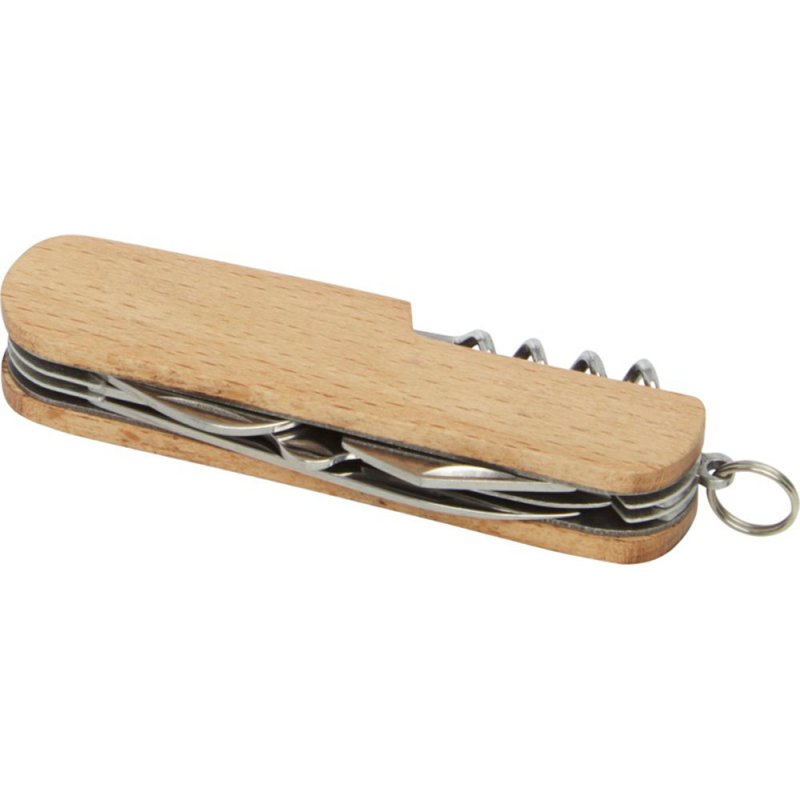 Прочный и долговечный компактный карманный нож из высококачественной нержавеющей стали с рукоятками из буковой древесины. Этот карманный нож должен быть у любого скаута, мастера и любителя отдыха на природе. Имеет 7 функций: нож, штопор, напильник/очиститель напильника, кольцо для ключей, плоская отвертка, открывалка для бутылок/банок и ножницы. Используемая буковая древесина поступает от надежных поставщиков, соблюдающих все экологические и социальные нормы. Размер в открытом состоянии 17 x 2,5 см, а в закрытом — 9,5 x 2,5 см. Поставляется с инструкцией по эксплуатации и упакован в подарочную коробку из переработанного картона размером 12 x 4,5 x 2 см.