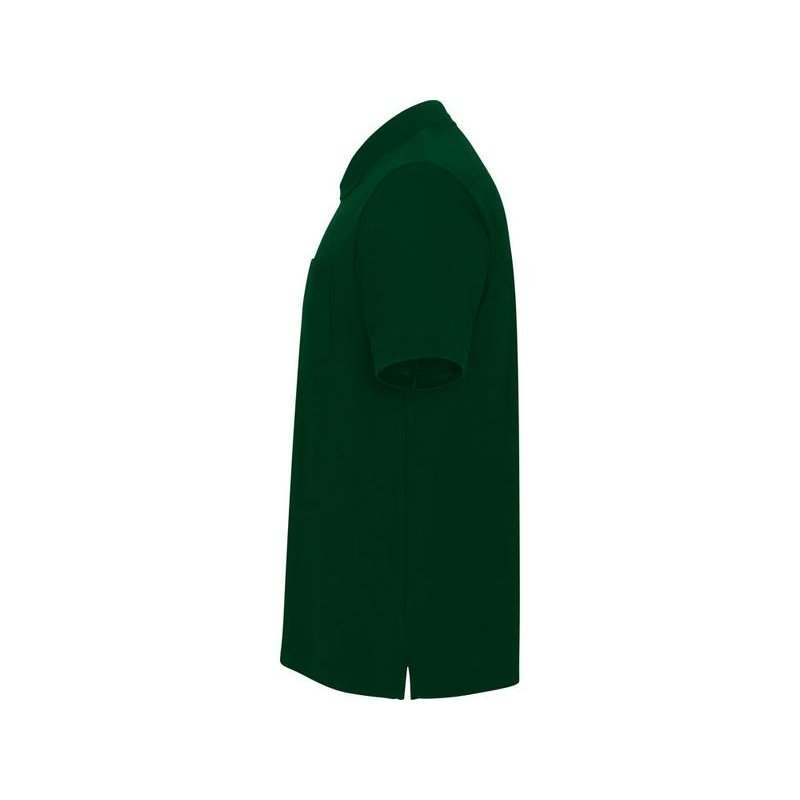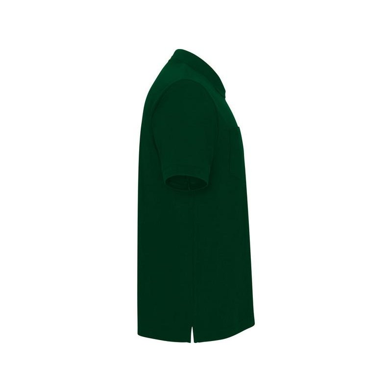 Рубашка поло с коротким рукавом и накладным карманом. Воротник и манжеты из риба 1х1 со структурными полосками по краю. Планка застегивается на три пуговицы. По горловине укрепляющая тесьма.