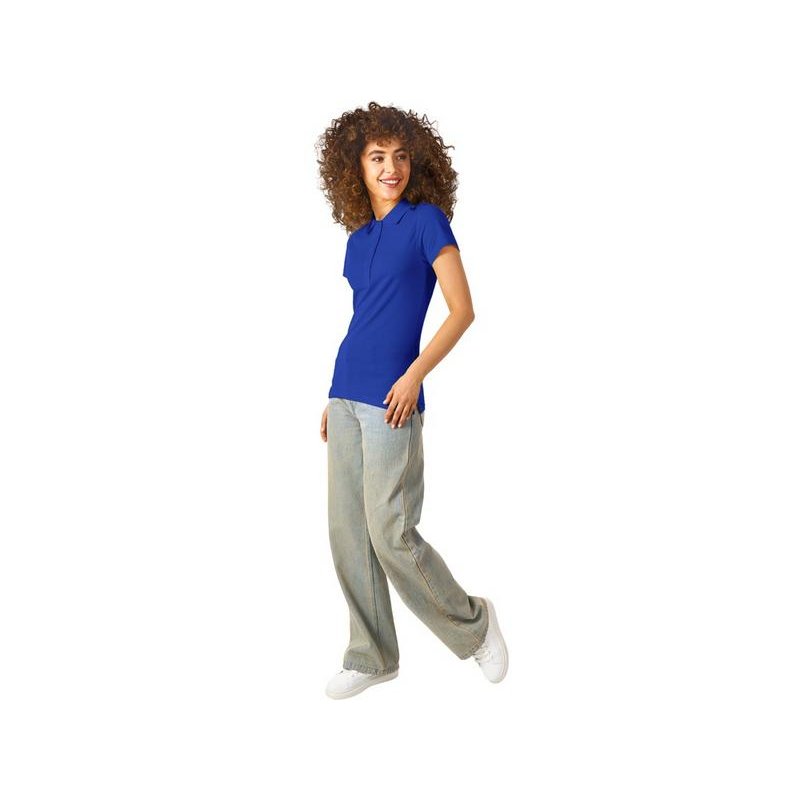 Женская рубашка-поло First. Воротник 1х1. Обшивка внутри воротника. Мужская и детская модели с 2 пуговицами, женская - с 4 пуговицами. Пуговицы с гравировкой в тон. Пике, 100% хлопок. 160 г/м2.