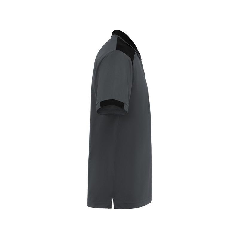 Рубашка-поло с коротким рукавом в двухцветной комбинации. Воротник и половина рукава отделана рибом 1x1. Планка на 2 пуговицы. Усиленные закрытые швы по воротнику. Боковые разрезы внизу. Контрастные плечи и детали. Дополнительный контрастный карман.