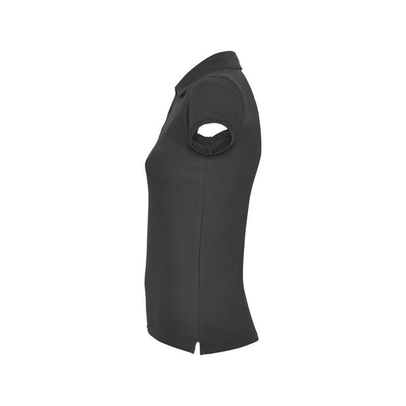 Поло с коротким рукавом для женщин приталенного силуэта. Воротник и манжеты из риба 1х1, отделка горловины внутри тесьмой. Элегантная планка застегивается на 3 пуговицы. Разрезы в боковых швах.
