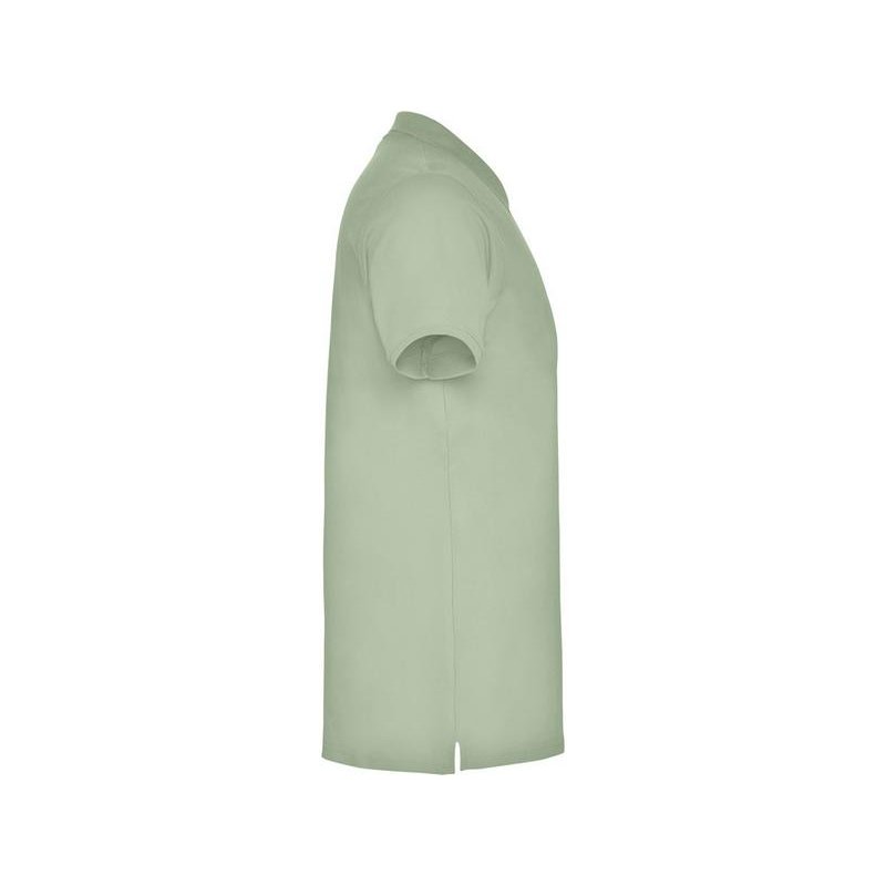 Поло с коротким рукавом, воротник и манжеты из риба 1х1, отделка горловины внутри тесьмой. Планка застегивается на 3 пуговицы. Разрезы в боковых швах.