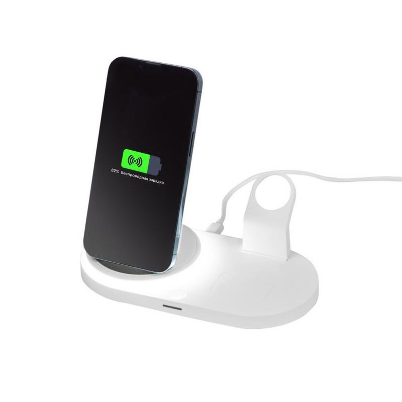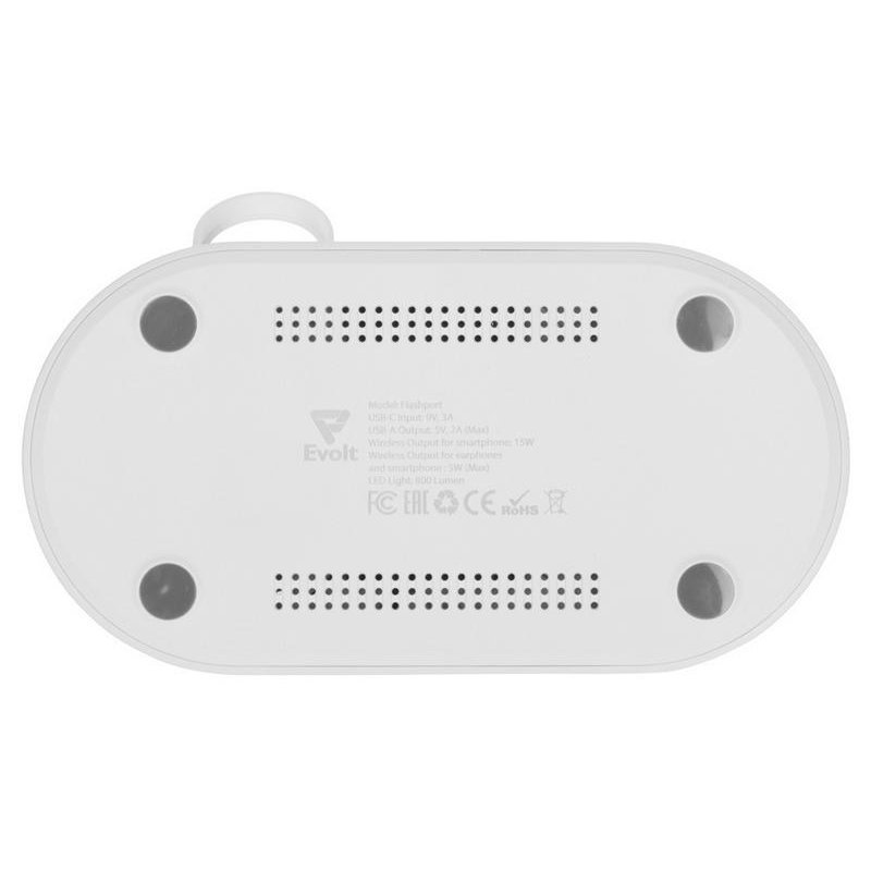Flashport от Evolt - это складная зарядная станция с беспроводной зарядкой для телефона и наушников. В комплекте также идет подставка под зарядку для наручных смарт-часов. На регулируемой панели зарядки смартфона расположены 2 катушки (2 центра беспроводной зарядки), которые позволяют заряжать ваш девайс как в вертикальном, так и горизонтальном положении. Беспроводная зарядка для наушников мощностью 5 Вт подходит для зарядки не только беспроводных наушников, но и второго смартфона. Чтобы включить встроенную лампу, нажмите сенсорную кнопку 1 раз. Для плавного изменения яркости света нажмите и удерживайте сенсорную кнопку при включенной лампе. Кабель 100 см в комплекте.