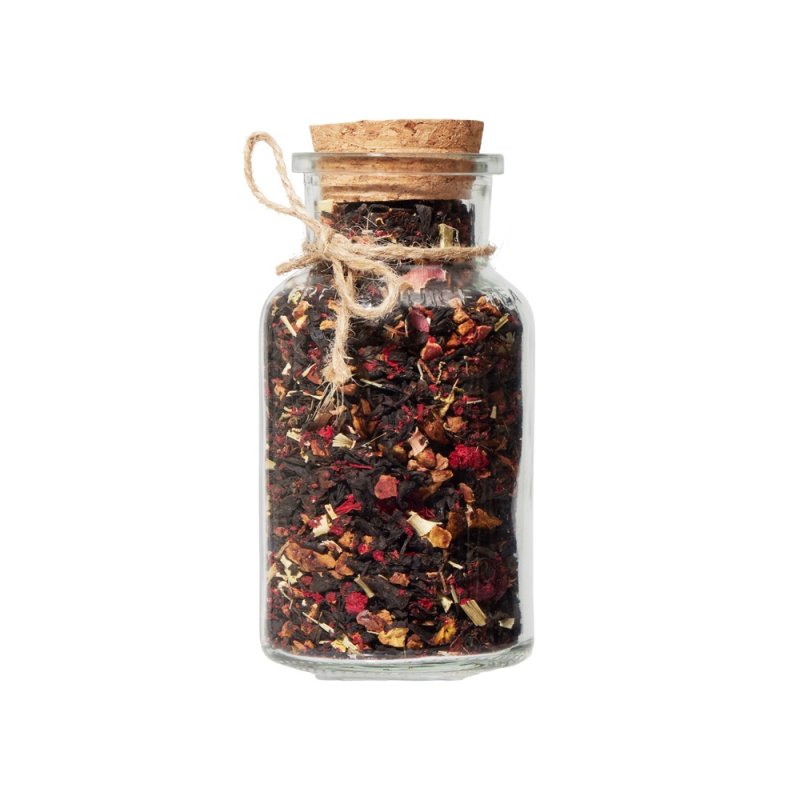 Состав: чай черный с ананасом и соком ананаса (чай черный байховый крупнолистовой, кусочки ананаса, сок ананаса), вишня сублимированная, цветки граната, корка граната, лемонграсс, ароматизатор натуральный Вишня, ароматизатор натуральный Апельсин.