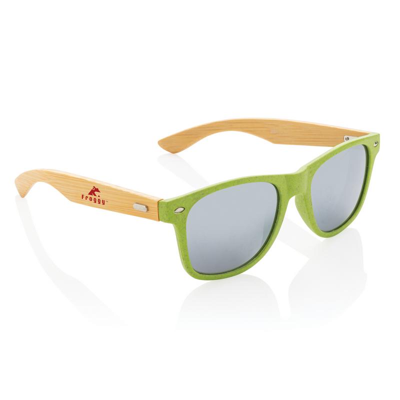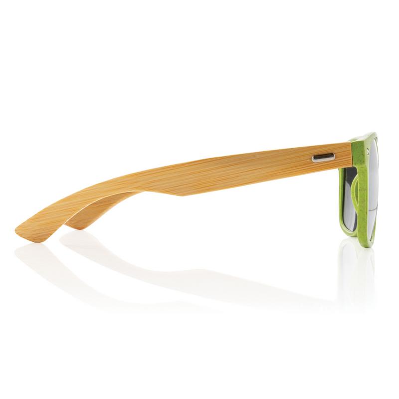 Солнцезащитные очки с оправой из волокна пшеничной соломы и дужками из бамбука. Поставляются в упаковке из крафт-бумаги. Линзы с максимальной защитой UV400.