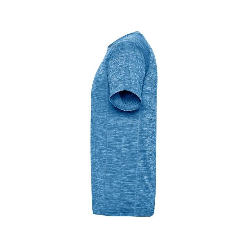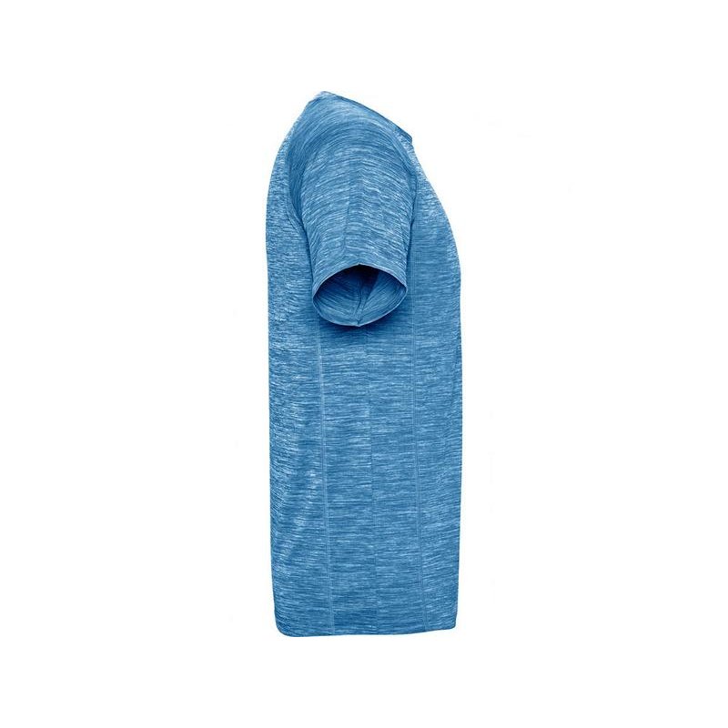 Спортивная футболка из полиэстерового полотна с рукавом реглан. Круглый вырез горловины. Легко сохнущее дышащее полотно с красивым меланжевым эффектом.