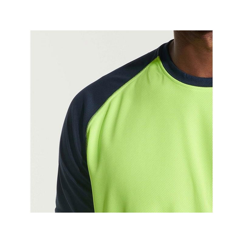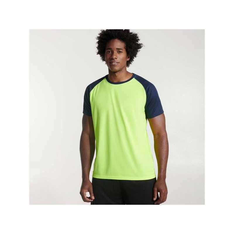 Спортивная футболка с контрастным рукавом реглан. Круглый вырез горловины с контрастной тесьмой. Технологическое дышащее полотно.