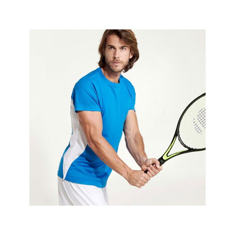 Спортивная футболка из технологического полотна и колорблок вставками. Круглый вырез горловины укреплен тесьмой. Контрастные вставки по бокам. Дышащее технологичное полотно - легко стирается и быстро сохнет.