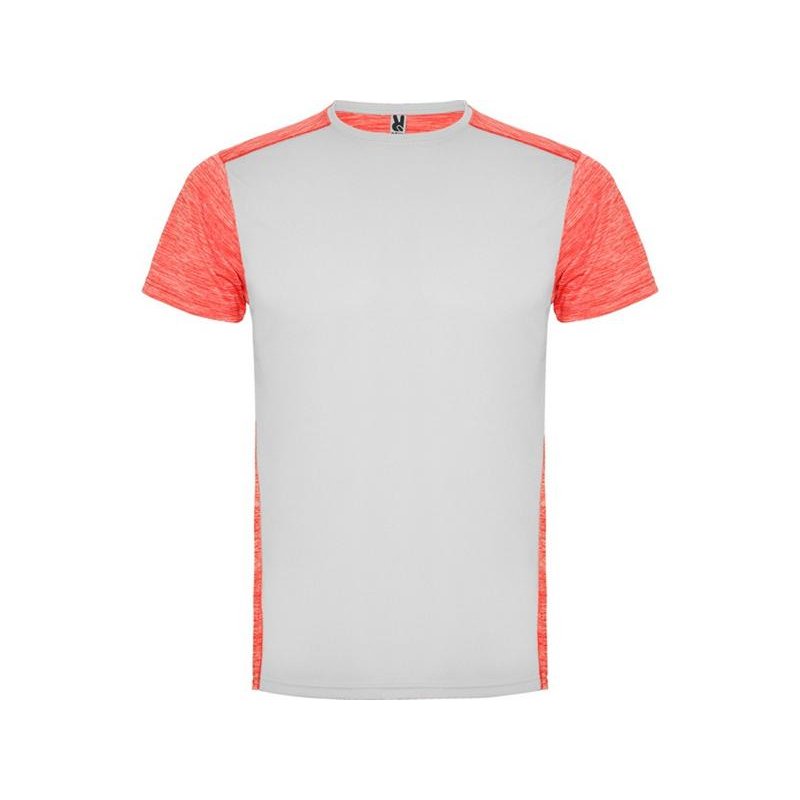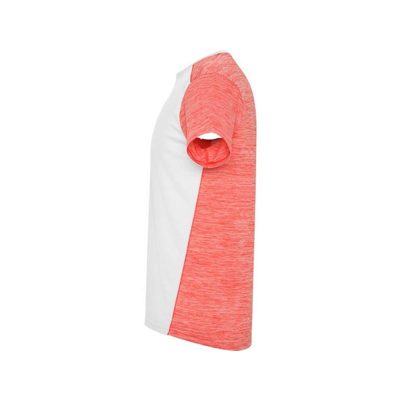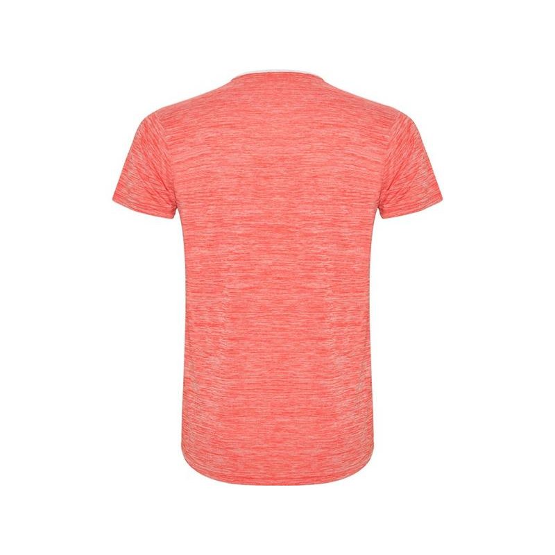 Футболка с коротким рукавом из технологического полотна. Круглый вырез горловины. Комбинация двух полиэстеровых полотен. Основное полотно на полочке со структурой, дополнительное полотно на спинке, рукавах и плечах с меланжевым эффектом. Задняя часть немного длиннее. Легко сохнущее дышащее полотно.