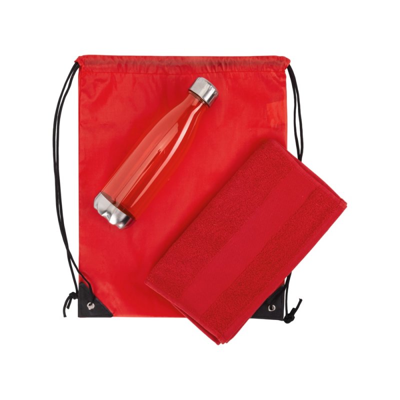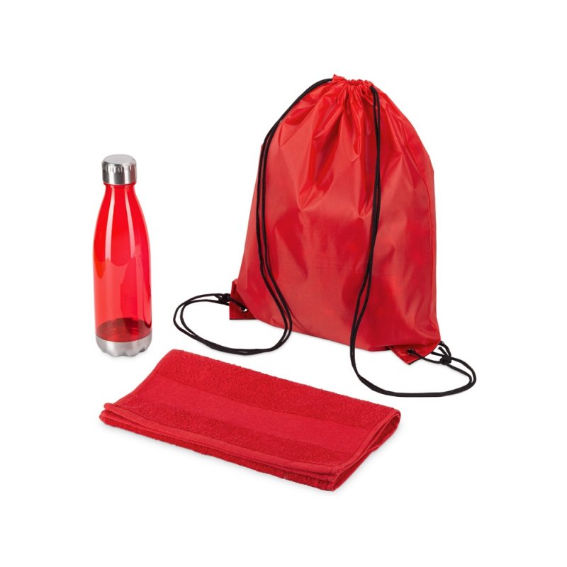 - Материал товара:рюкзак- полиэстер 210D, полотенце- 100% хлопок, бутылка- тритан, сталь