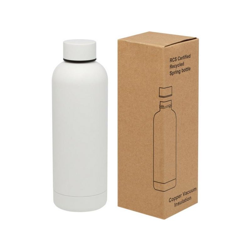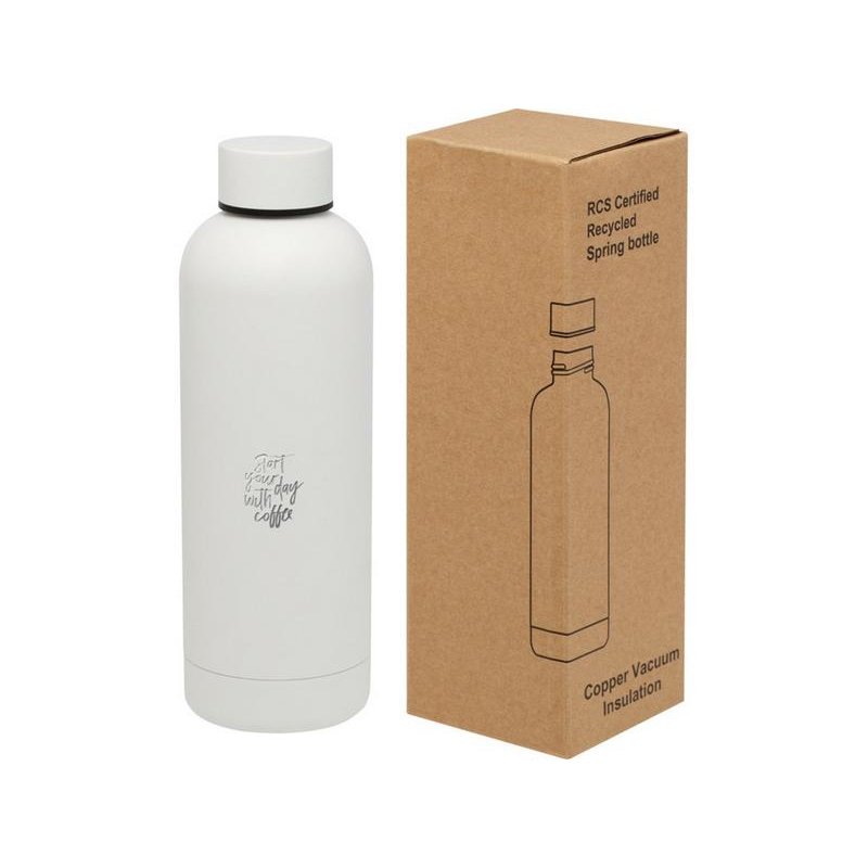Бутылка из нержавеющей стали, сертифицированная RCS, с медной вакуумной изоляцией и лаконичным дизайном. Изолированная конструкция из нержавеющей стали предотвращает образование конденсата внутри бутылки, а модное матовое порошковое покрытие делает бутылку особенно прочной. Не содержит БФА, протестирована и одобрена в соответствии с немецким законодательством о безопасности пищевых продуктов (LFGB). Проверена на содержание фталатов и одобрена для использования в соответствии с правилами REACH. Объем 500 мл. Рекомендуется мыть вручную. Поставляется в подарочной коробке из переработанного картона. Recycled stainless steel.