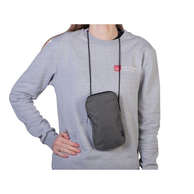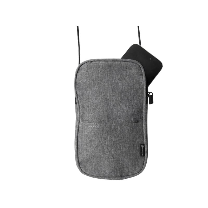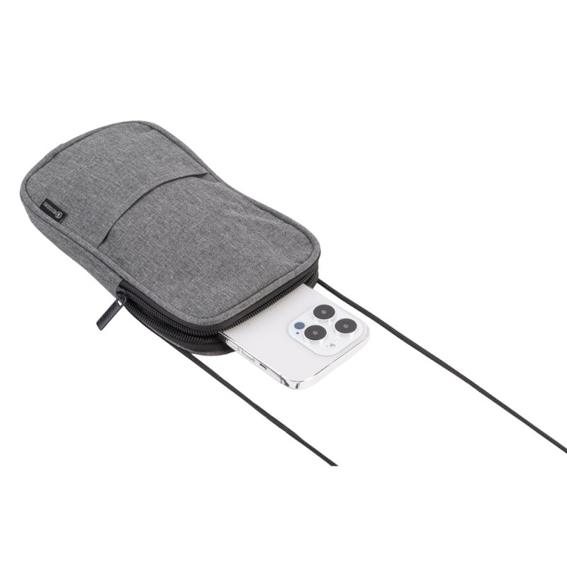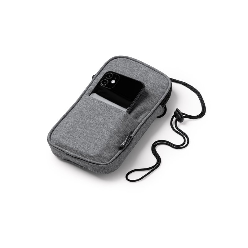 Мобильный чехол из полиэстера RPET. Основное отделение с застежкой-молнией. Внешний карман. В комплект входит шнурок для переноски. Длина шнурка 122 см.