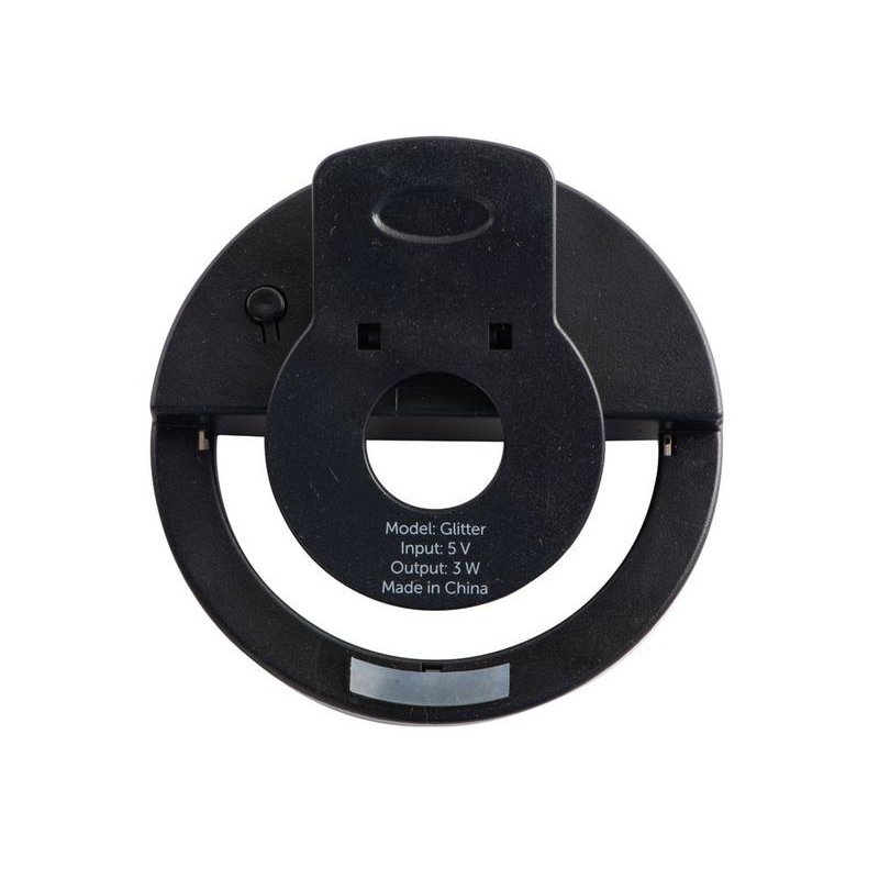 Световое кольцо Glitter делает ваши селфи- фото и видео более качественными за счет дополнительного освещения. Подсветка представлена нейтральным белым цветом от 48 светодиодов с 3 режимами яркости. Время непрерывного свечения - до 2 часов. Можно быстро зарядить от любого пауэрбэнка по micro USB. Благодаря удобной конструкции селфи-кольцо устанавливается и снимается за секунду. На корпусе имеются силиконовые защитные полоски, чтобы исключить даже малейшие повреждения экрану смартфона.