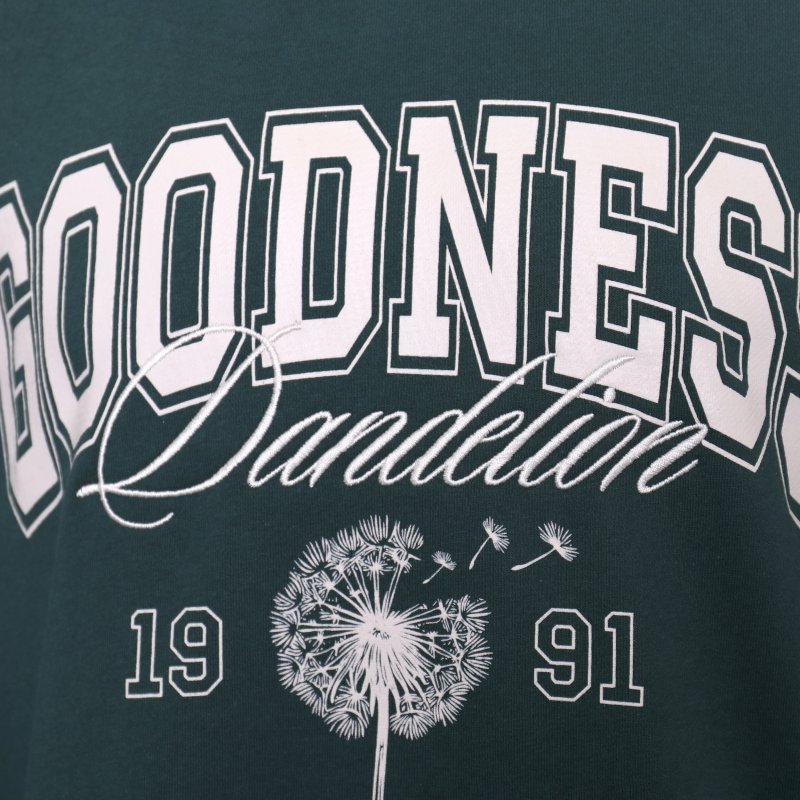 В качестве основы – свитшот без начеса арт. 96. Принт «Goodness» выполнен классической шелкографией, «Dreams» - фактурной вышивкой.