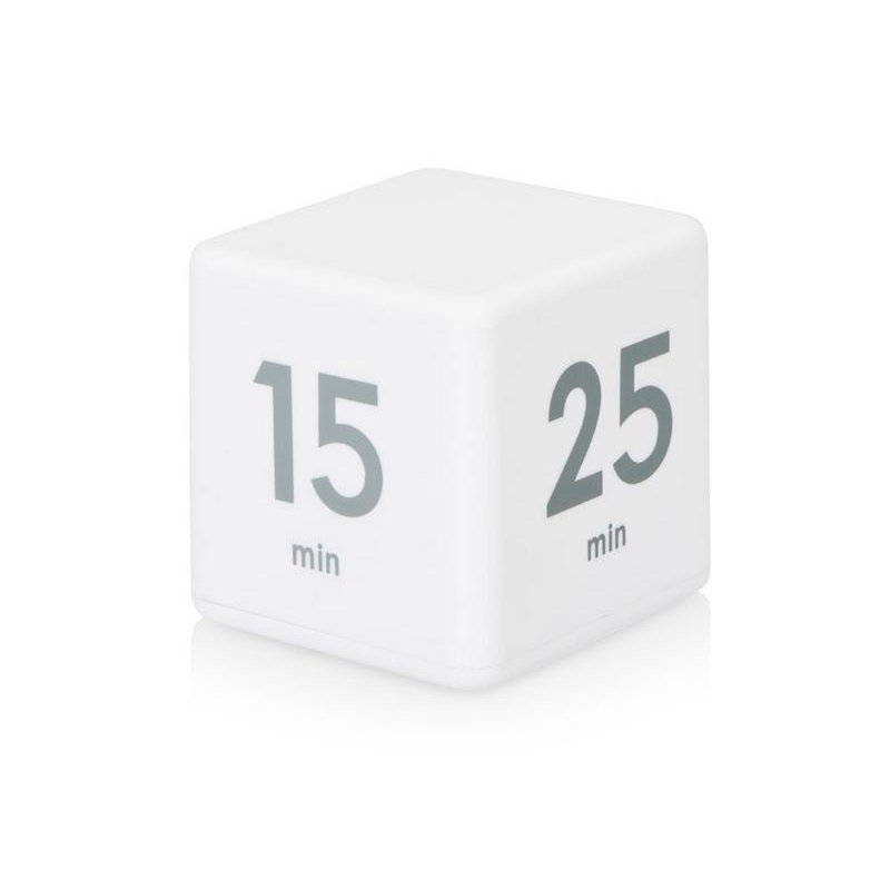 На сторонах куба напечатаны четыре предустановленных времени обратного отсчета (5, 15, 25 и 45 минут). Просто включите таймер и поверните его нужной цифрой наверх для начала отсчета времени. Когда время закончится, раздастся звуковой сигнал.