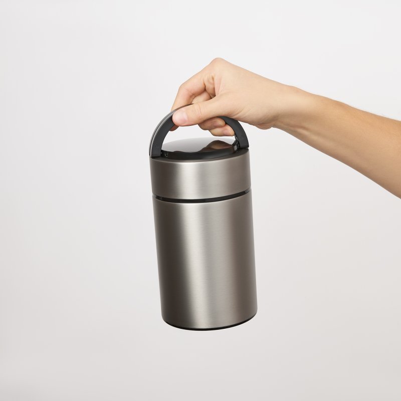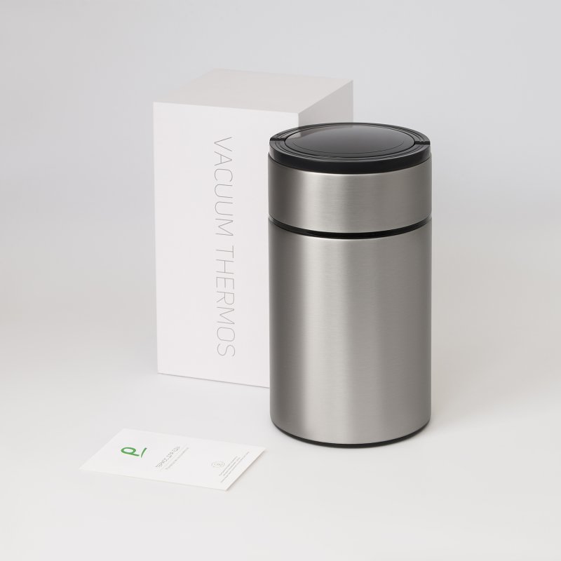 Внутренняя крышка оснащена специальным отсеком, в котором находится складная ложка из высококачественной стали 304 марки. Вакуумная конструкция из нержавеющей стали надежно сохраняет тепло.