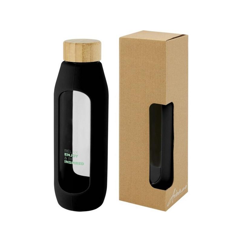 Экологичная многоразовая бутылка для воды, которая сохраняет воду чистой. Бутылка изготовлена из прочного боросиликатного стекла без содержания вредных химических веществ, благодаря чему сохраняется настоящий вкус чистой свежей воды. Имеет силиконовый держатель и герметичную крышку из органического бамбука. Протестировано и одобрено согласно немецкому законодательству о безопасности пищевых продуктов (LFGB), а также проверено на содержание фталатов согласно нормам REACH. Объем 600 мл. Сняв держатель и крышку, бутылку можно мыть в посудомоечной машине. В подарочной коробке из переработанного картона.