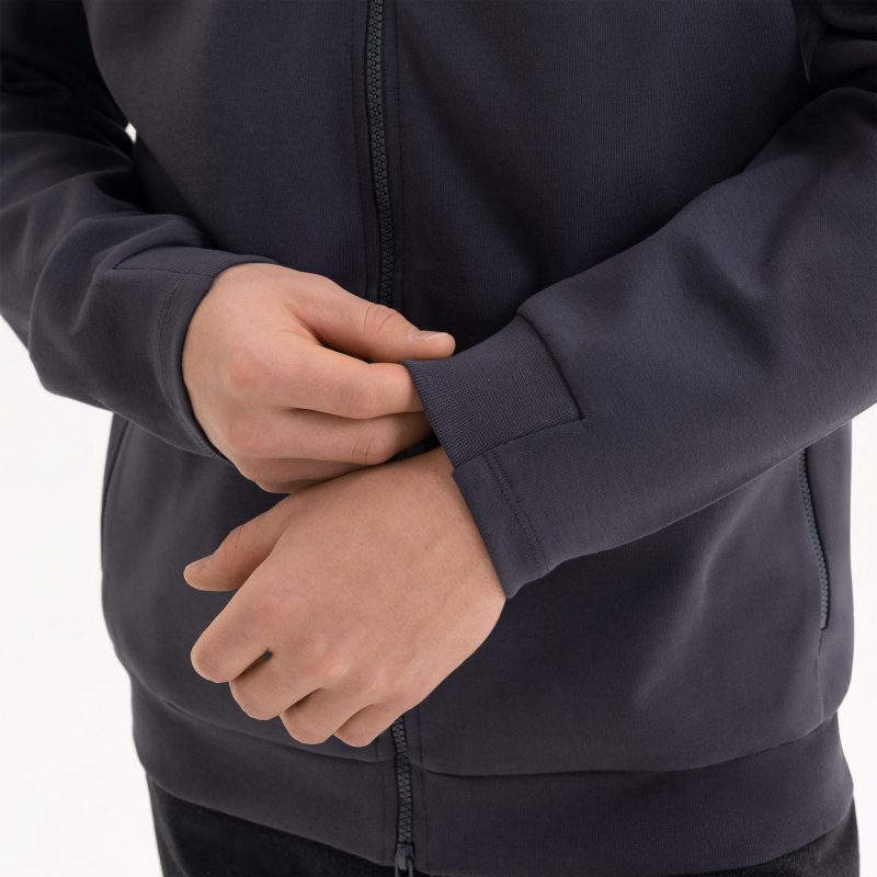 За счет уникального кроя толстовка хорошо садится по фигуре и обеспечивает комфорт при движениях. Толстовка сделана из мягкой и прочной ткани интерлок "doubleface", которая приятна к телу и легка в уходе, не растягивается, не выцветает и не деформируется после стирки. Воротник-стойка, манжеты и низ сделаны из плотной резинки 2х2, благодаря чему вещь держит форму.