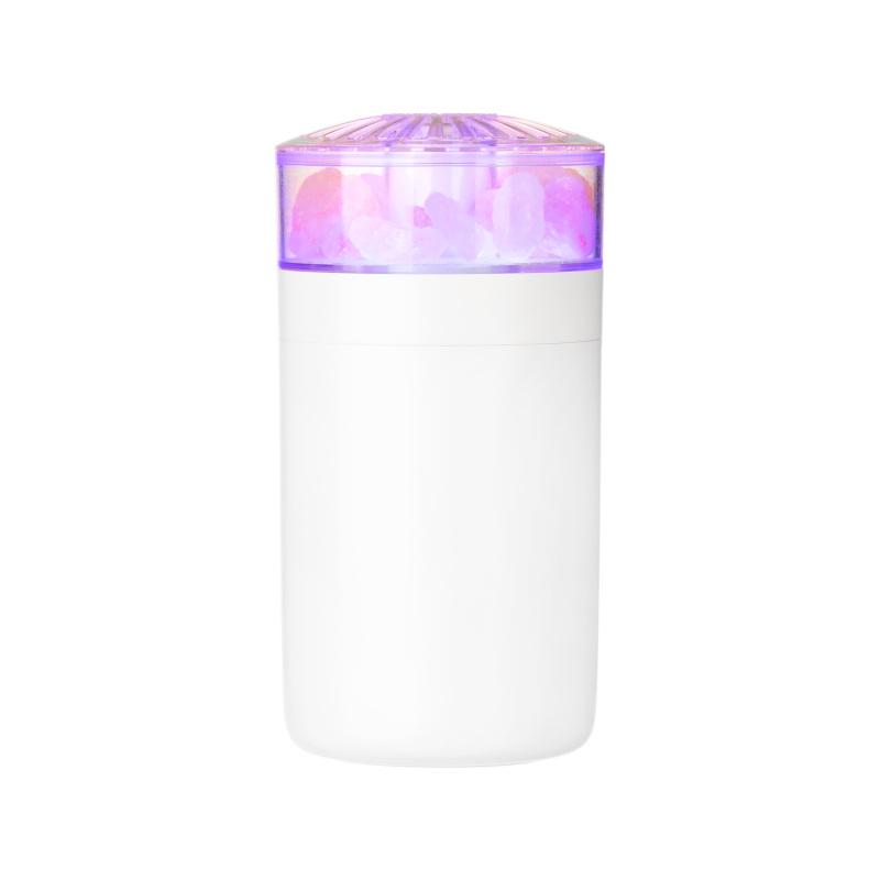 Мини-увлажнитель воздуха с соляными кристаллами и функцией радужной LED-подсветки Технология нано-распыления эффективно снижает сухость и статическое электричество в воздухе. Кристаллы гималайской соли при нагревании LED-подсветкой ионизируют и очищают воздух. Устройство можно использовать как аромадиффузор, добавив на поверхность кристаллов пару капель эфирного масла. Специальное покрытие корпуса OIL PAINT обеспечивает лучшие визуальные и тактильные характеристики пластика. Подходит для использования в помещении и в автомобиле. Объем резервуара воды – 250 мл.