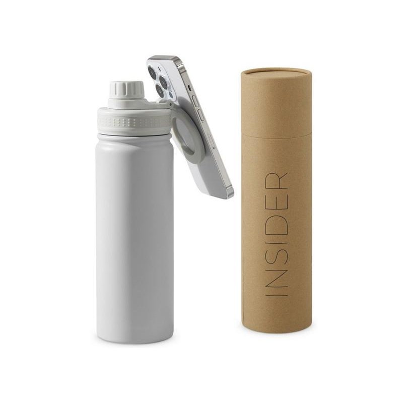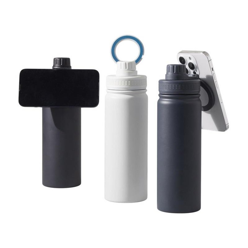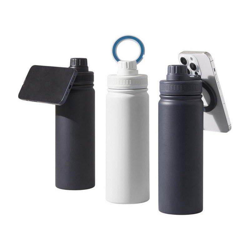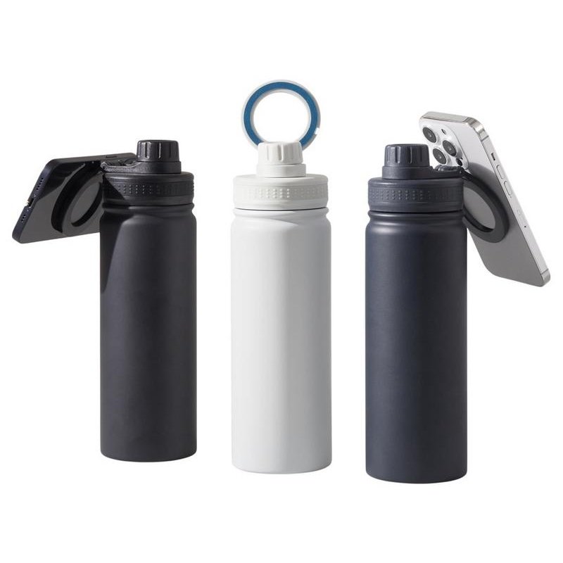 Современные технологии и стильный дизайн объединились в одной бутылке! Спортивная бутылка с магнитным держателем MagSafe поможет вам всегда держать водный баланс в норме и сделает жизнь удобнее. Благодаря магнитному держателю бутылка надежно удерживает iPhone 12 версии и новее. Магнитное крепление подходит также и для любого смартфона, т.к. в комплекте есть металлическое кольцо с клейким слоем. Кольцо наклеивается на заднюю крышку или чехол смартфона, и вы можете крепить смартфон к бутылке за секунду. Объем 600мл.