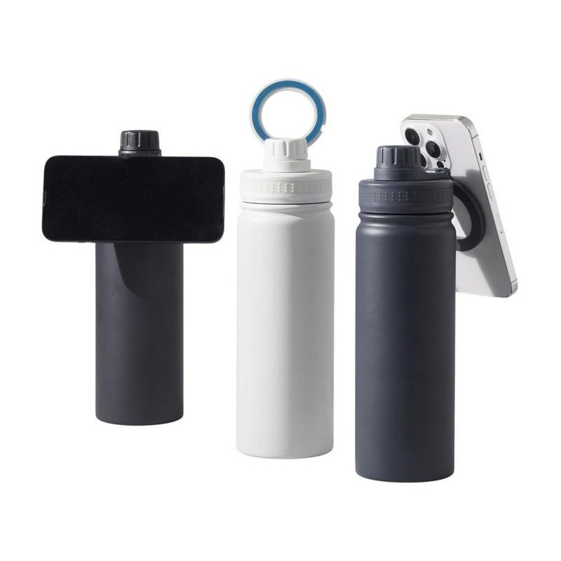 Современные технологии и стильный дизайн объединились в одной бутылке! Спортивная бутылка с магнитным держателем MagSafe поможет вам всегда держать водный баланс в норме и сделает жизнь удобнее. Благодаря магнитному держателю бутылка надежно удерживает iPhone 12 версии и новее. Магнитное крепление подходит также и для любого смартфона, т.к. в комплекте есть металлическое кольцо с клейким слоем. Кольцо наклеивается на заднюю крышку или чехол смартфона, и вы можете крепить смартфон к бутылке за секунду. Объем 600мл.