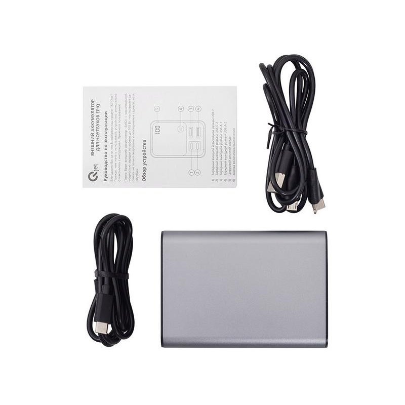 Внешний аккумулятор EpIQ — это мощный мобильный помощник в современном прогрессивном мире. С ёмкостью 30000 mAh и поддержкой зарядки до 100 Вт заряжает большинство ноутбуков через USB Type-C до 50% всего за 30 минут или со скоростью родной зарядки. Благодаря 4 выходным разъемам вы можете одновременно заряжать ноутбук, планшет, смартфон и другое портативное устройство — без переключений и лишних адаптеров. Встроенный интеллектуальный дисплей в реальном времени показывает направление заряда, силу тока, напряжение и активный режим быстрой зарядки, давая полный контроль над процессом. Прочный металлический корпус обеспечивает надёжность в любых условиях, а комплектный 100-ваттный кабель делает устройство полностью автономным решением всё в одном. EpIQ заменяет сразу несколько зарядных устройств и идеально подходит для командировок, путешествий, удалённой работы и повседневного использования.