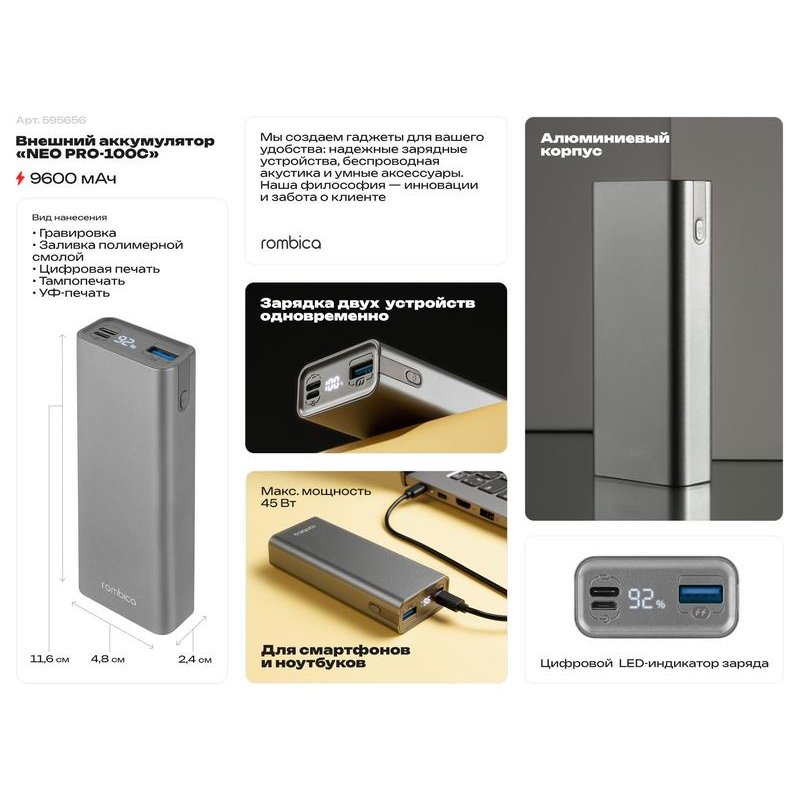 - Комплектность:аккумулятор, кабель Type C-Type C, руководство пользователя