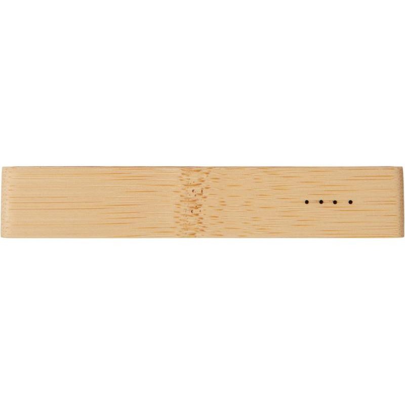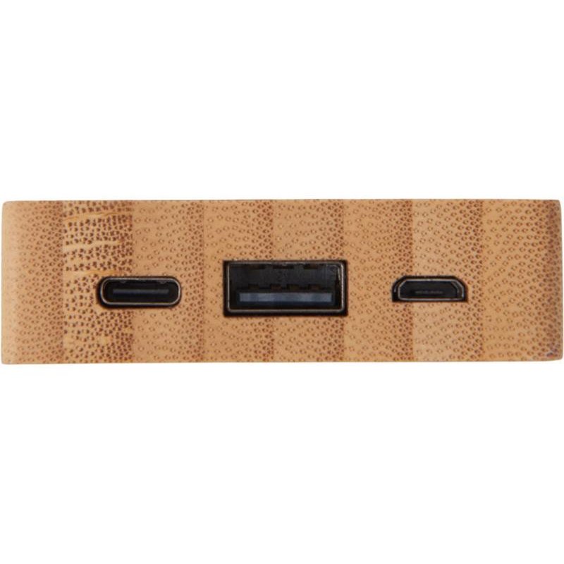 Компактный и стильный внешний аккумулятор ёмкостью 5 000 мАч — идеальный спутник для повседневных дел и коротких поездок. Его корпус сочетает в себе натуральный бамбук и переработанный ABS-пластик, что делает устройство не только более экологичным, но и визуально премиальным. Особый шарм ему придаёт встроенная панель с белой подсветкой с возможностью нанесения логотипа — ваш бренд или инициалы мягко засветятся в темноте, привлекая внимание и подчеркивая индивидуальность. Это не просто power bank — это экосознательный аксессуар, который заряжает ваши гаджеты и вдохновляет окружающих.