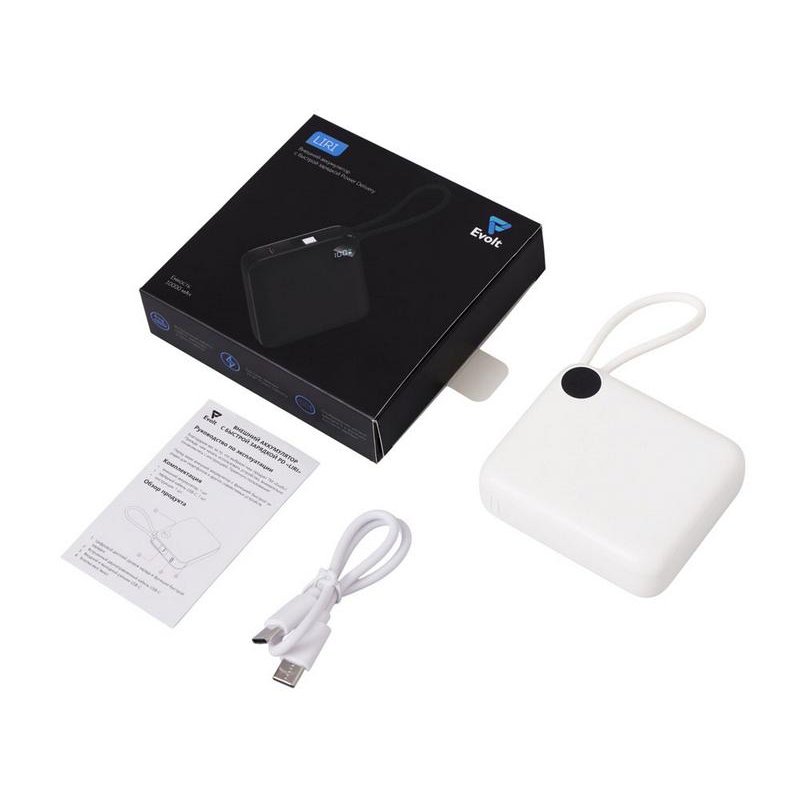 - Встроенный двунаправленный кабель-петелька USB-C —всегда под рукой! Заряжает смартфоны по USB-C (в т.ч. новые iPhone), а также заряжается сам по встроенному кабелю.