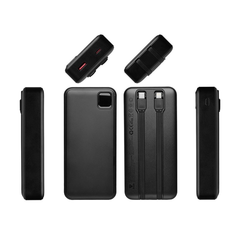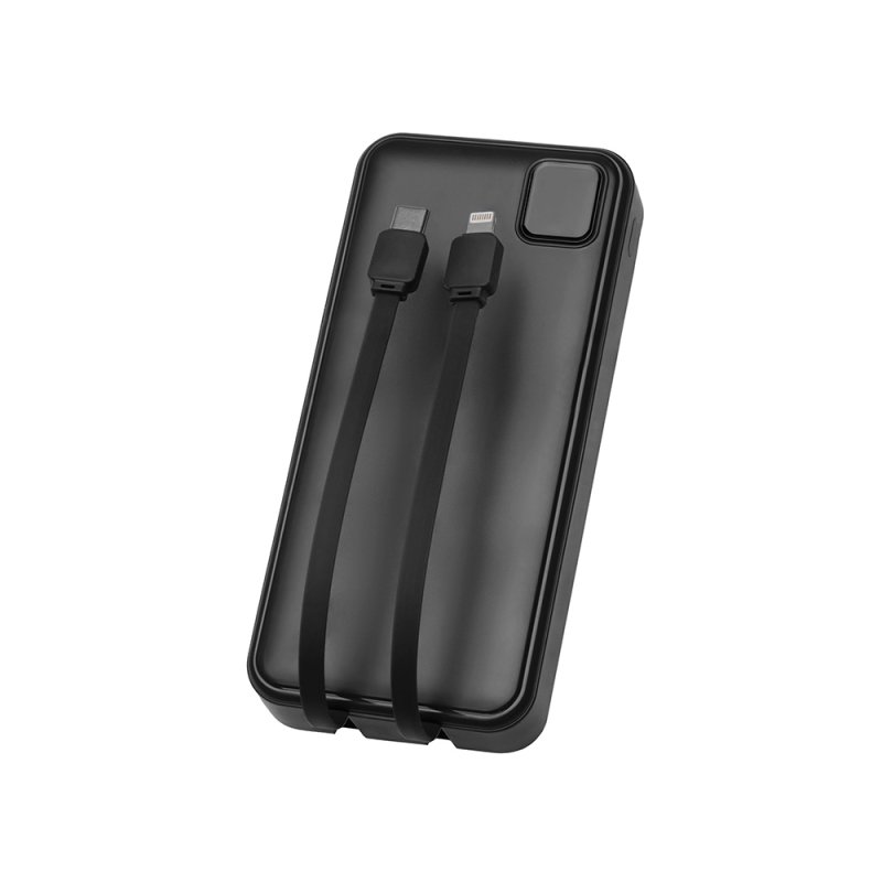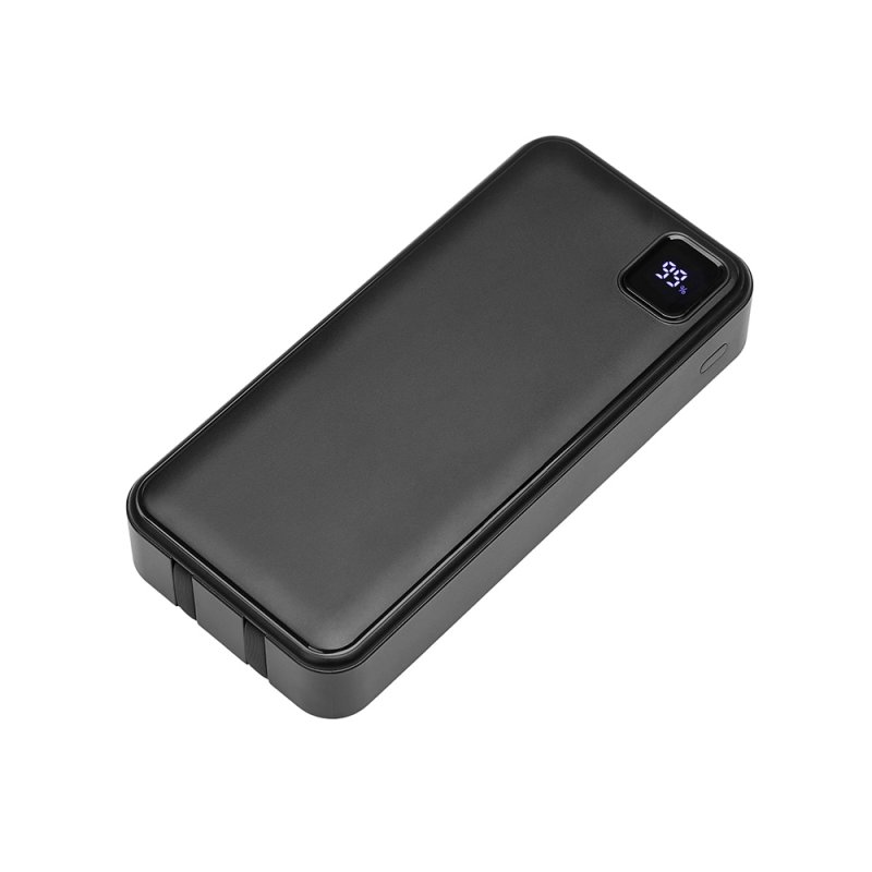 Удобный внешний аккумулятор с функцией быстрой зарядки и встроенными кабелями USB-C (симметричный разъём USB тип С)и Lightning (разъём в ранних версиях iPhone)— ваш надежный партнер в путешествиях, на встречах и в повседневных задачах. Цифровой дисплей в реальном времени показывает точный остаток заряда и статус быстрой зарядки, а встроенные кабели и несколько разъемов позволяют заряжать до 4 устройств. Прочный корпус из переработанного АБС-пластика и емкость 20000 мАч обеспечивают зарядом все ваши устройства на долгий срок. Идеальный выбор для тех, кто ценит комфорт и функциональность в одном устройстве. Продуманная упаковка: для открытия просто потяните за язычок, и появится гаджет с нанесением.