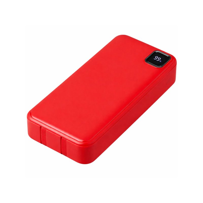Удобный внешний аккумулятор с функцией быстрой зарядки и встроенными кабелями USB-C (симметричный разъём USB тип С)и Lightning (разъём в ранних версиях iPhone)— ваш надежный партнер в путешествиях, на встречах и в повседневных задачах. Цифровой дисплей в реальном времени показывает точный остаток заряда и статус быстрой зарядки, а встроенные кабели и несколько разъемов позволяют заряжать до 4 устройств. Прочный корпус из переработанного АБС-пластика и емкость 20000 мАч обеспечивают зарядом все ваши устройства на долгий срок. Идеальный выбор для тех, кто ценит комфорт и функциональность в одном устройстве. Продуманная упаковка: для открытия просто потяните за язычок, и появится гаджет с нанесением.