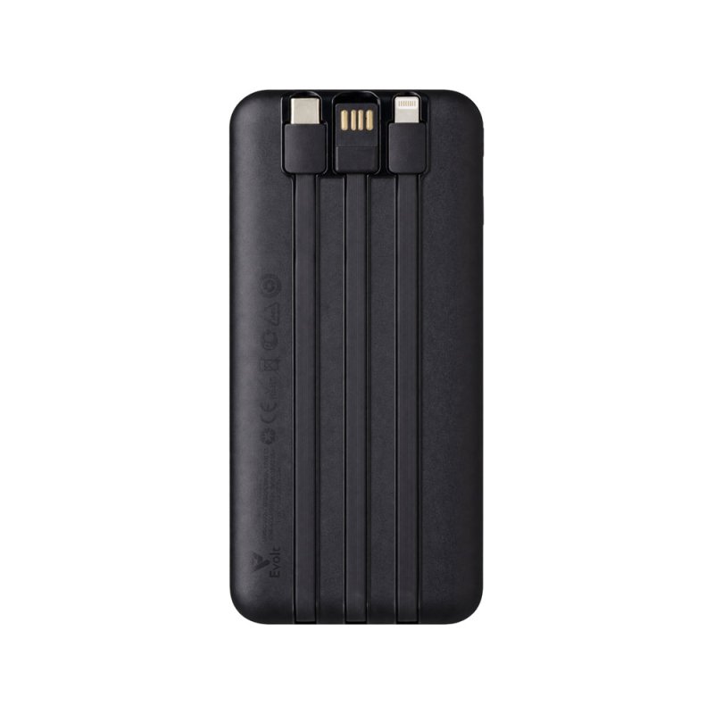 Максимум удобства — без лишних аксессуаров: в корпус уже интегрированы все необходимые кабели — для зарядки смартфона и самого устройства.