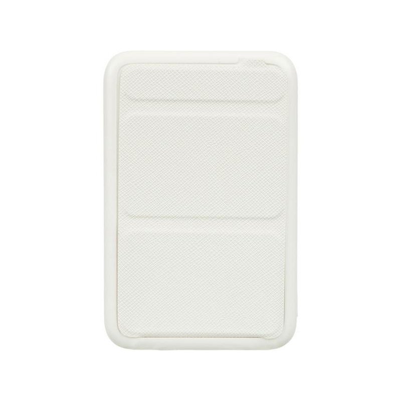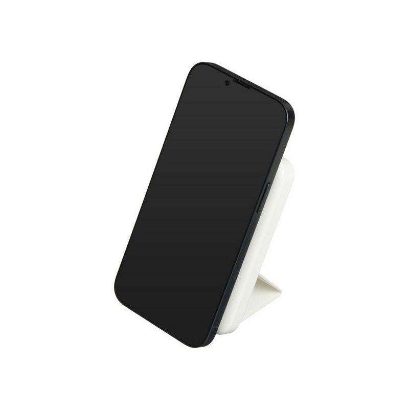 Сзади расположена пластичная складная подставка из качественного полиуретана с зернистой текстурой. В развернутом виде на столе подставка позволяет пользоваться смартфоном одной рукой, при этом, благодаря магнитным держателям, смартфон может быть расположен как вертикально, так и горизонтально.