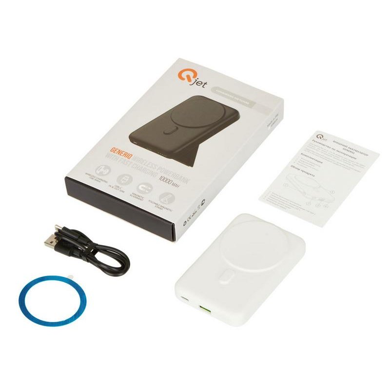 Продвинутый повербанк с уникальным стилем. Ёмкости 10000 мАч хватает в среднем на 2,5-3 зарядки смартфона. GenerIQ поддерживает быструю беспроводную зарядку 15 Вт с авто-включением: просто поднесите смартфон к повербанку - он мгновенно примагнитится и начнется зарядка*. Беспроводная зарядка будет работать и во время зарядки самого повербанка. Металлическое кольцо для смартфонов на Android в комплекте.