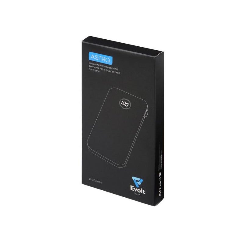 Портативный аккумулятор включает в себя всё самое необходимое: стильный дизайн и удобство использования. На фронтальной стороне с цифровым индикатором заряда можно выгравировать яркий светящийся логотип. На обратной стороне с беспроводной зарядкой (5 Вт) для смартфонов можно сделать УФ-лого. Зарядный кабель 2-в-1 (USB-С и Lightning) крепится по периметру корпуса. Покрытие soft-touch.
