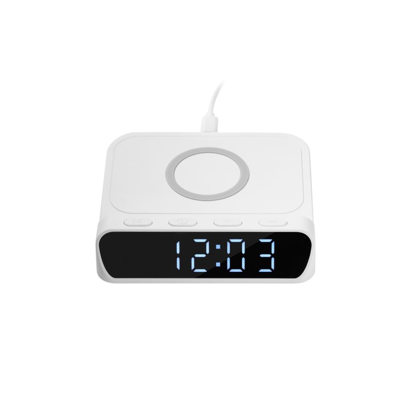 Зарядная станция 15W с часами и будильником. 12- или 24- формат времени. Три уровня яркости дисплея, индикаторы уровня заряда и будильника. Функция энергосбережения - после отключения питания внутренняя батарейка-«таблетка» сохраняет настройки часов, и после повторного подключения к питанию часы не нужно переустанавливать.