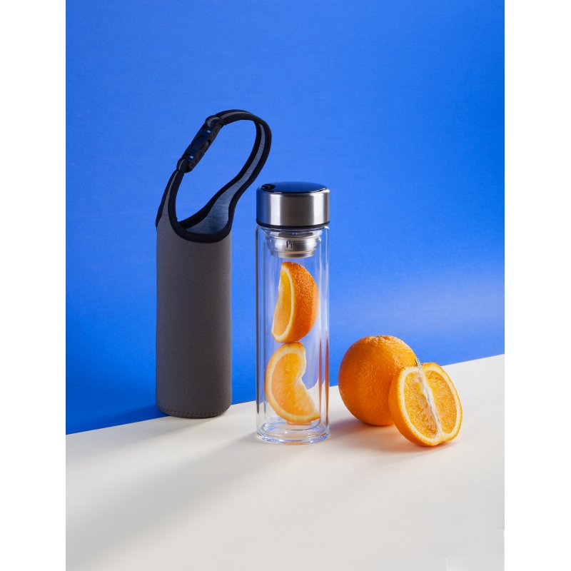 Заварочный термос "Остин" на 320 мл с двойной колбой из боросиликатного стекла - современный аксессуар, который удобно взять с собой на прогулку, в поездку или отдых. Неопреновая сумка-чехол не только защищает колбу, но и улучшает её температурные характеристики. Пользователям понравится герметичная крышка. Чай или кофе удобно заваривать прямо в термосе, в жаркую погоду можно использовать его под освежающий коктейль или цитрусовую воду. В комплекте есть съемное сито из 304 стали для фильтрации содержимого.