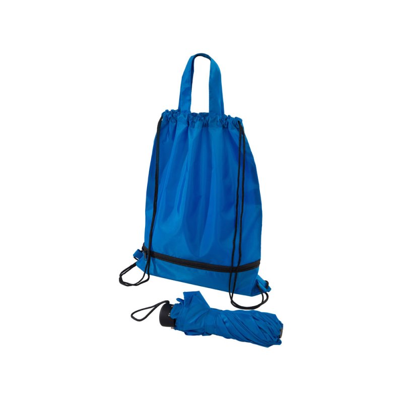 Механический зонт с прорезиненной ручкой идет в комплекте с сумочкой для покупок. На дне сумочки предусмотрен карман на молнии, в котором вы можете хранить зонт дома или прятать в него мокрый зонт, когда вы попали под дождь. Находясь в кармане сумочки, мокрый зонт не доставит неудобств. Сумочка имеет 2 варианта использования: шопер с двумя 2 ручками и рюкзак-мешок сошнурками.