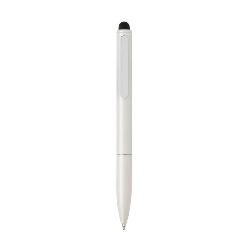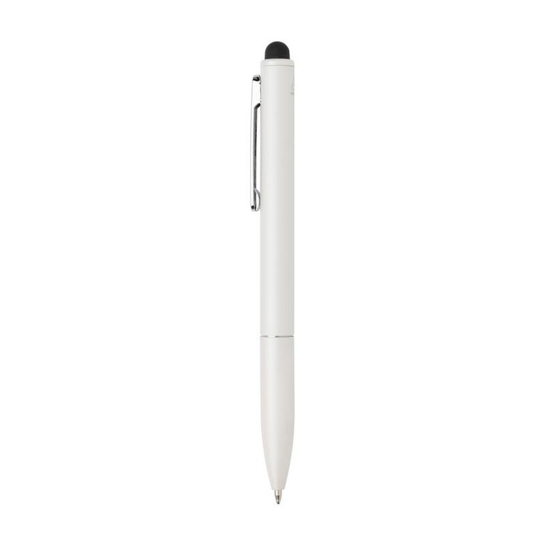 Ручка Kymi сочетает в себе классическую шариковую ручку и стилус для сенсорных экранов. Изготовленная из переработанного алюминия, она получилась легкой, прочной и приятной на ощупь. Такая ручка станет отличным подарком тем, кто заботится о природе: алюминий — уникальный материал, который можно перерабатывать бесконечно. Она удобно сидит в руке и обеспечивает плавное письмо. Стержня с синими немецкими чернилами Documental хватит на 700 метров письма. Сертифицировано RCS. Эта сертификация полностью контролирует путь поставок переработанных материалов и гарантирует их наличие в изделии.