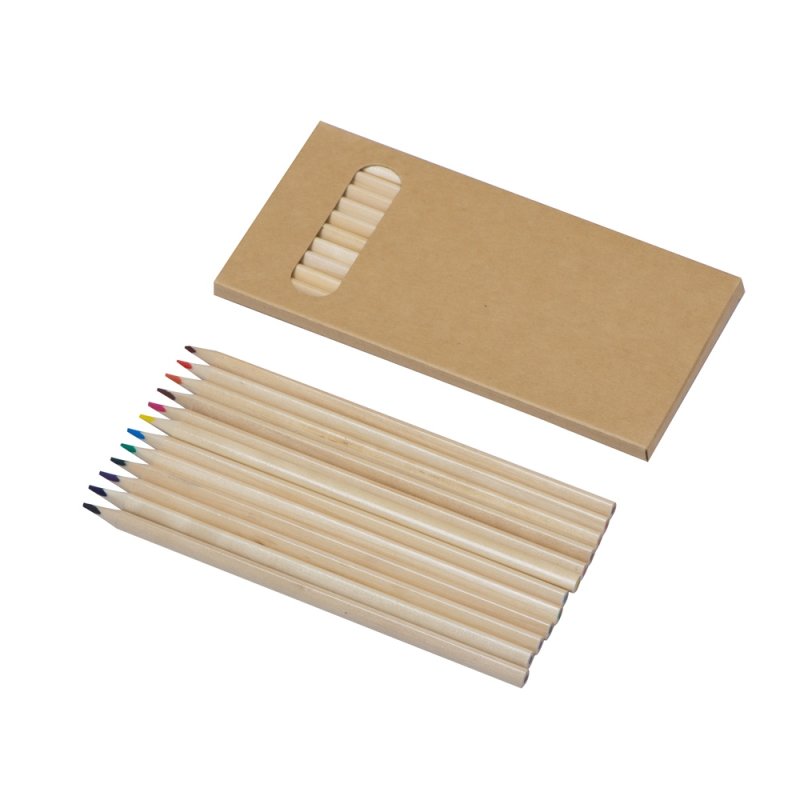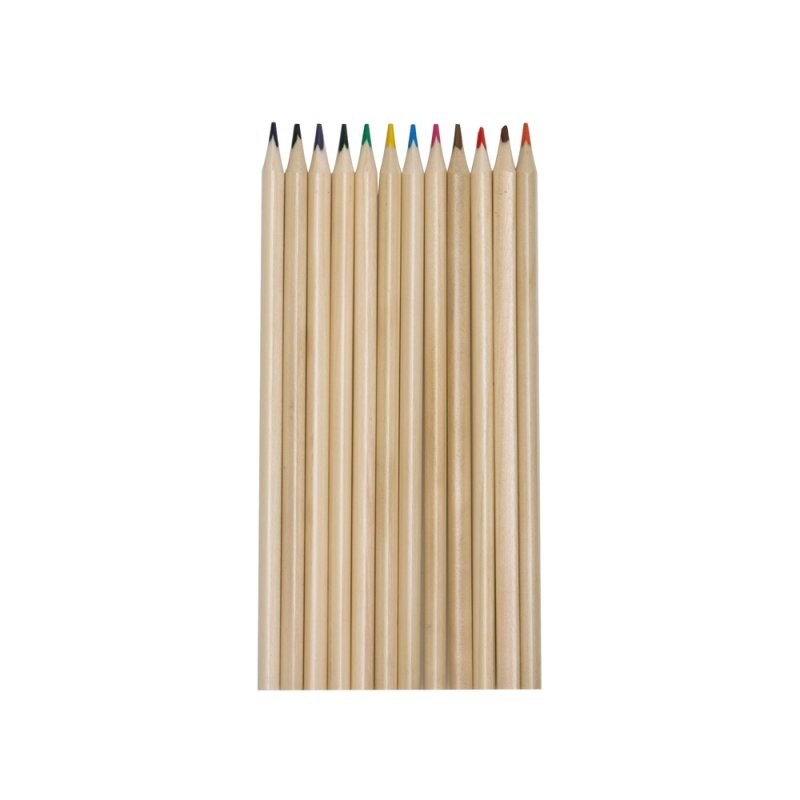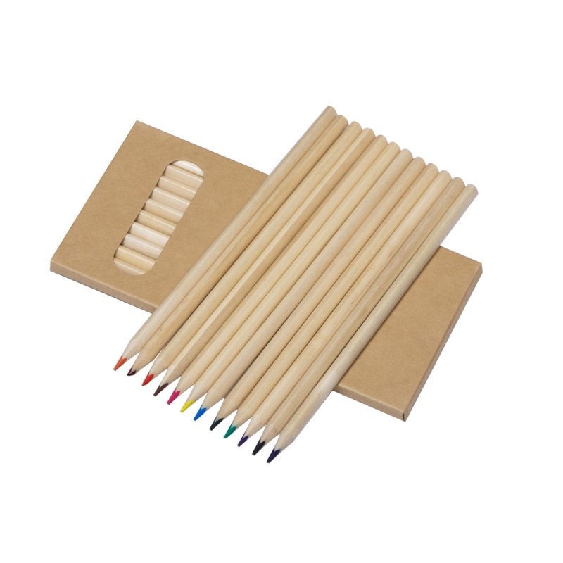 Набор из 12 трехгранных цветных карандашей твердостью ТМ в натуральном корпусе. Нанесение можно сделать на всей поверхности упаковки