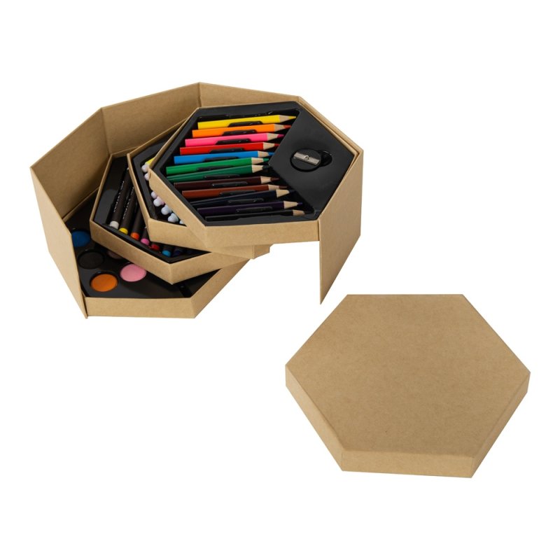 - Комплектность:маркер - 12шт, цветные карандаши - 12шт, восковые карандаши - 12шт, акварельные краски - 12шт, кисточка, точилка, ластик, скрепка