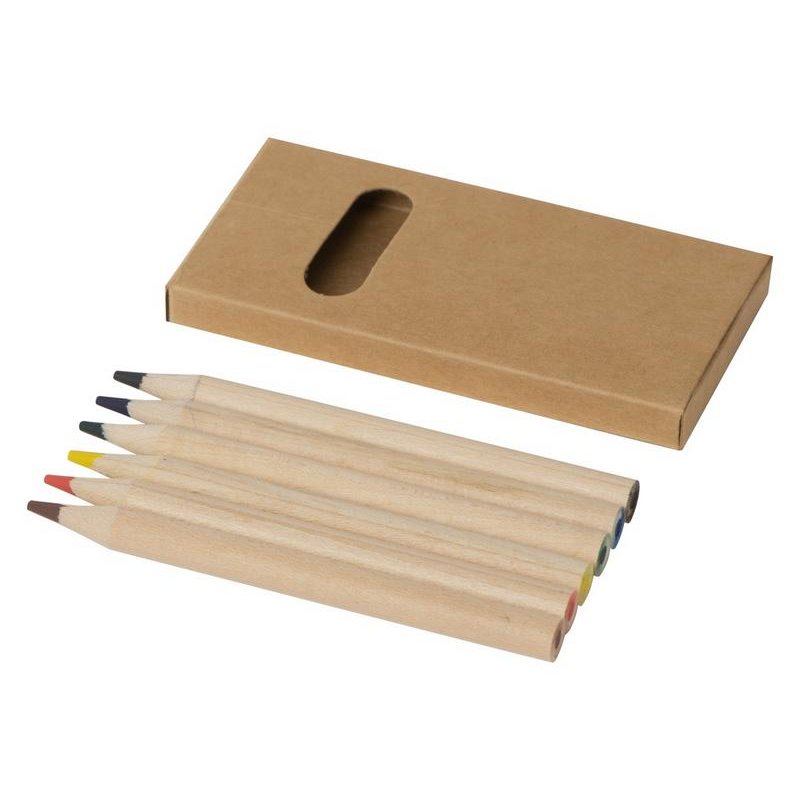 Набор из 6 цветных карандашей из натурального дерева. На картонную коробку и карандаши можно нанести логотип.