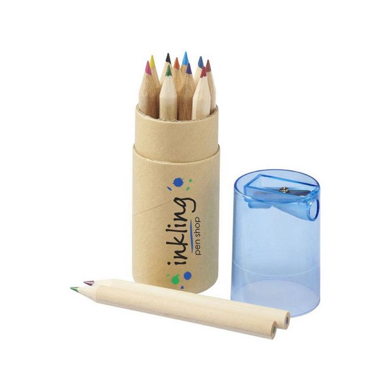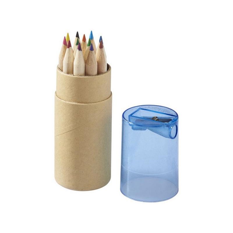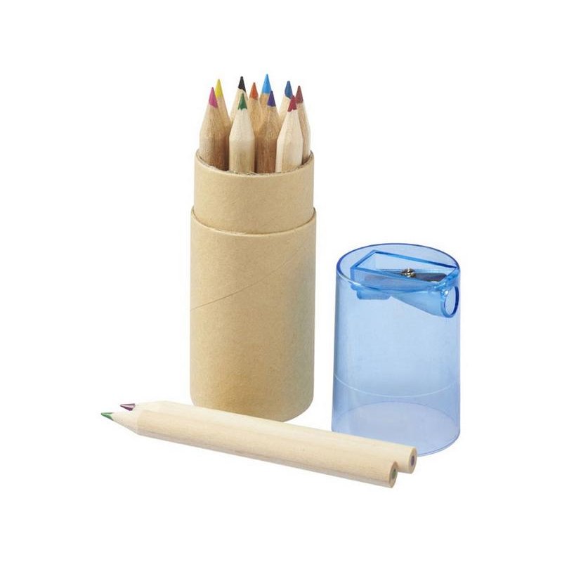 Набор из 12 маленьких карандашей в картонном стакане с точилкой.