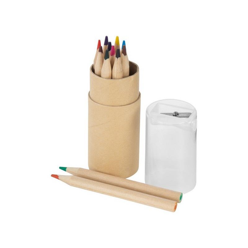 Набор из 12 маленьких карандашей в картонном стакане с точилкой.