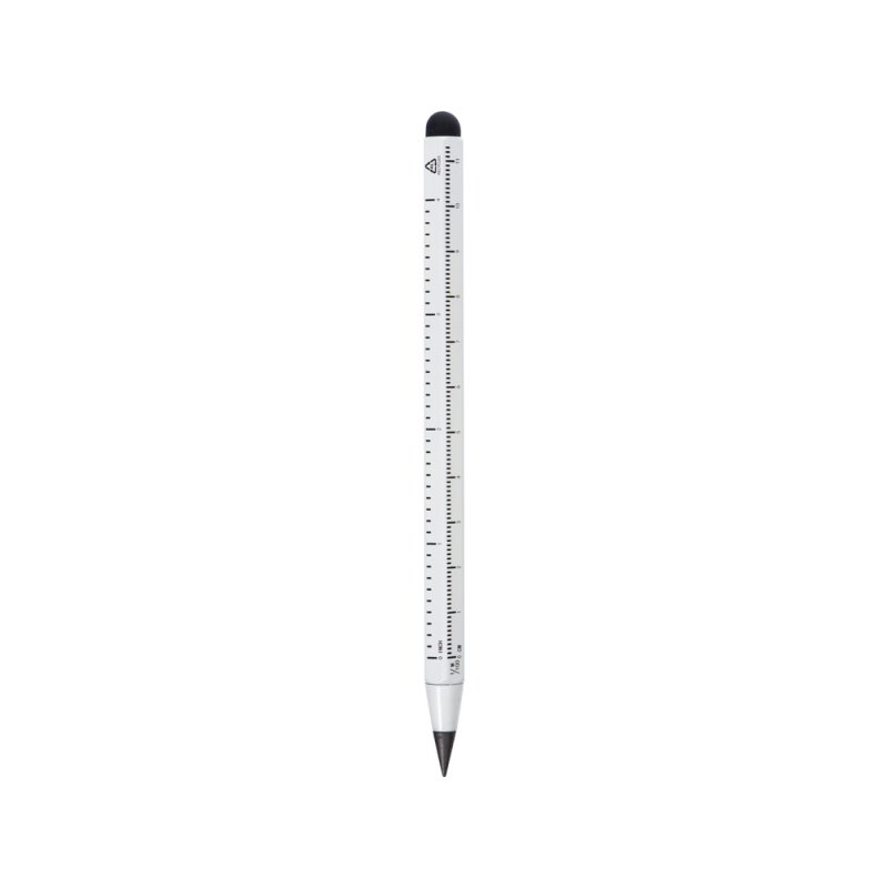 Карандаш изготовлен из переработанного алюминия. В отличие от обычных карандашей его не нужно точить, и он не пачкает руки.